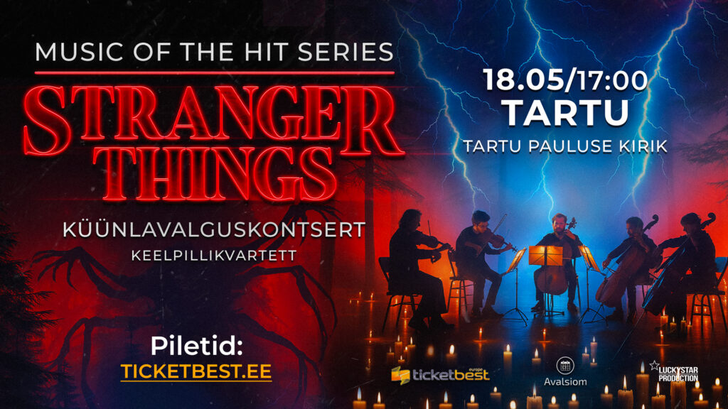 See unustamatu õhtu ühendab tuttavad meloodiad, filmiliku pinge ja küünlavalguse maagia, luues võimsa muusikalise rännaku läbi ulme ja põnevuse maailma. Klassikaliste keelpillide elav kõla ja sarja kõhedust tekitav helimaastik sulanduvad sügavalt kaasahaaravaks elamuseks nii Stranger Things’i fännidele kui ka muusikasõpradele. Kas tead juba, kellega soovid seda erilist õhtut jagada? Ära kõhkle — parimad kohad kaovad esimesena.