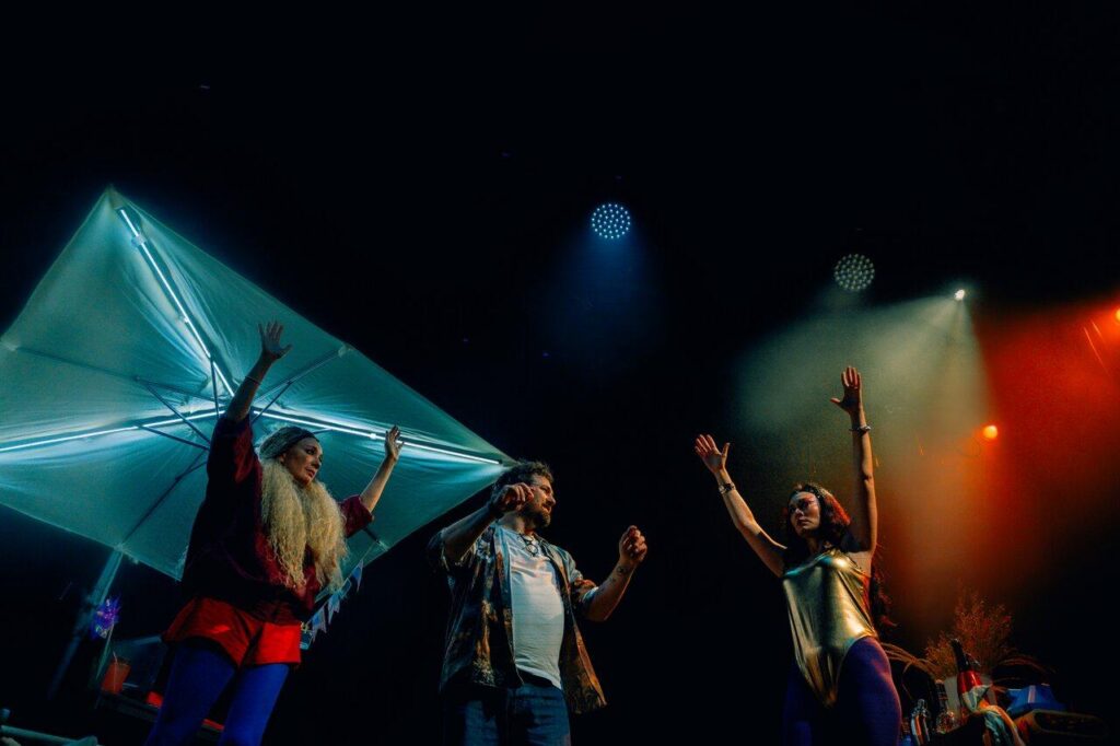 В нарочито простой форме три артиста ведут диалог, в котором соседствуют смешное и тревожное, повседневное и философское. Простая форма разговора становится способом задать сложные вопросы — те, с которыми зритель сталкивается в жизни, но не всегда решается озвучить. Как и в лучших своих произведениях, Вырыпаев сочетает игру с ритмикой слова, виртуозное владение текстом с парадоксальными метафорами и постоянной сменой авторской оптики, заставляя зрителя раз за разом смотреть на одни и те же темы под разными углами.